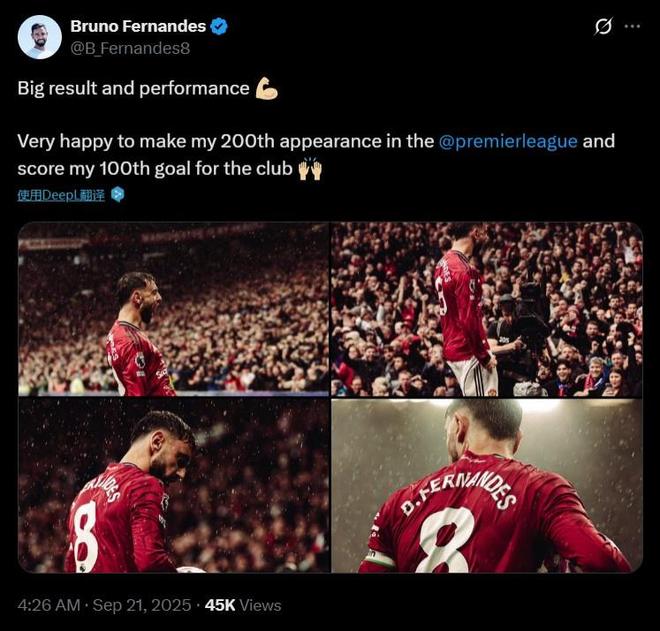 赛后,B费拿到了MVP奖励发文庆祝胜利并配文:重要的结果和表现!很高兴达成个人