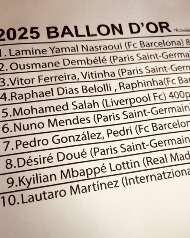 2025年金球奖颁奖典礼将在明天举行,每年颁奖前网上都会有各版本排名“泄露”,但可信度并没有保证。目前,网上已流出一份2025金球奖排名名单,亚马尔力压登贝莱获奖。网传2025金球奖排名:1.亚马尔2.登贝莱3.维蒂尼亚4.拉菲尼亚5.萨拉赫6.努诺-门德斯7.佩德里8.杜埃9.姆巴佩10.劳塔罗独家看