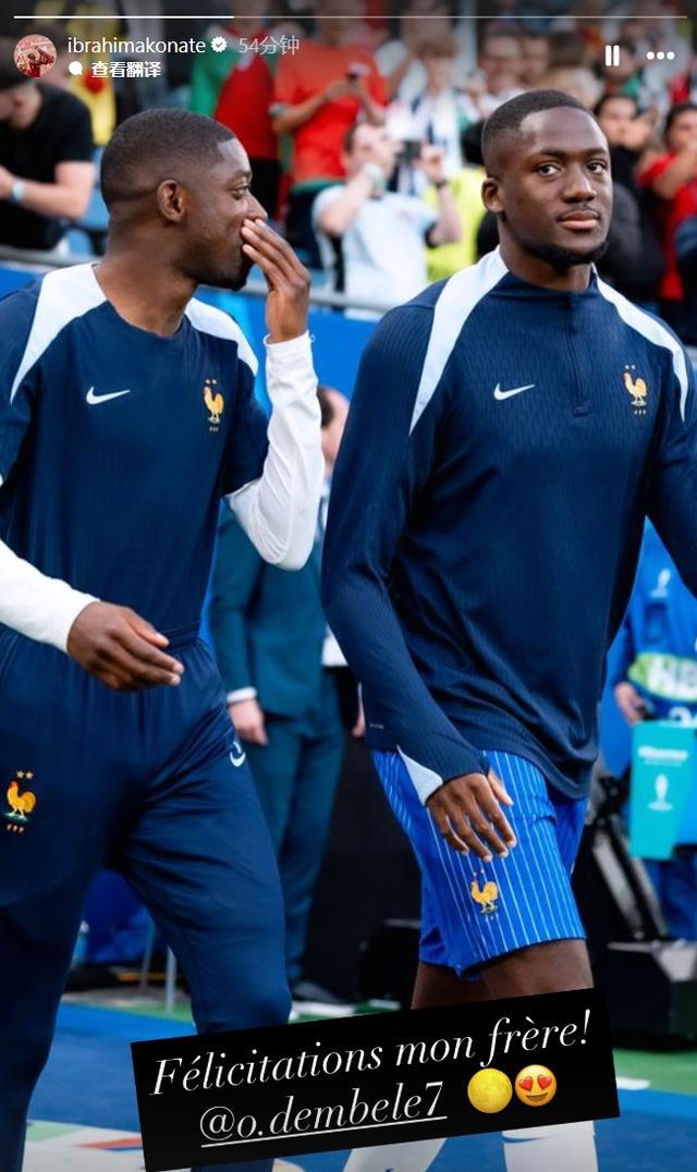 登贝莱获得金球奖!科纳特社媒晒合照:祝贺你,我的兄弟