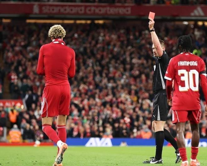 胜利的喜悦瞬间夹杂着戏剧性插曲,埃基蒂克在进球后脱衣庆祝,却因已有一张黄牌在身,两黄变一红被罚下场。这一冲动行为让利物浦在比赛最后阶段不得不十人应战。