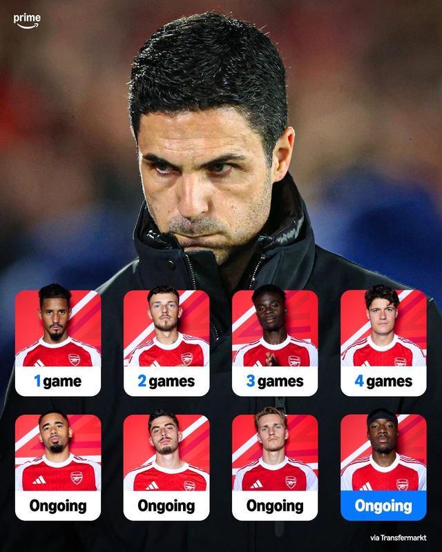 据悉,马杜埃凯预计将至少缺席11场阿森纳比赛(若球队在联赛杯继续前进,场次可能更多)。这段赛程包括:-本周日