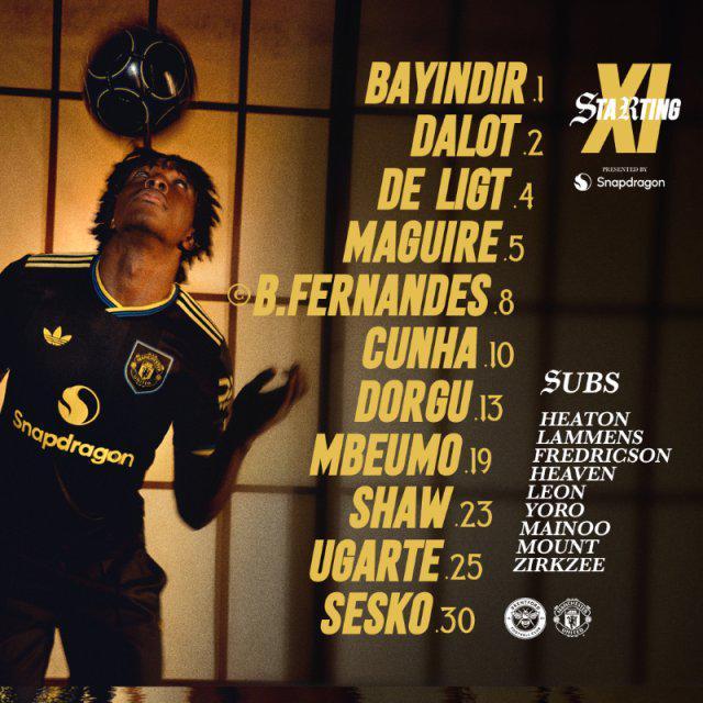 第6轮,曼联客战布伦特福德,赛前曼联首发阵容已经出炉,具体名单如下: 曼联首发:巴延德尔 / 德利赫特、马圭尔、卢克·肖 / 达洛特、布鲁诺·费尔南德斯、乌加特、多尔古 / 姆伯莫、库尼亚 / 舍什科