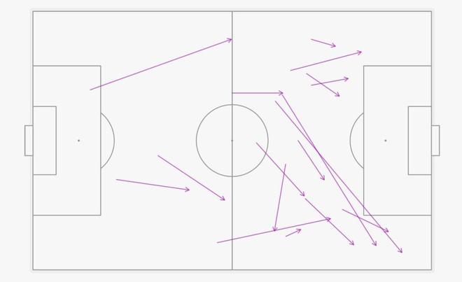 英超中场中排名第三。对阵纽卡斯尔一役,他送出17次此类传球,其中4次甚至穿透两道防线——这样的表现在本赛季尚属首次。