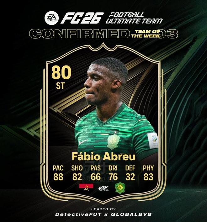 上轮中超联赛,法比奥在工体上演帽子戏法,助北京国安以4-2的比分战胜大连英博。借此,他将入选《FC26》的周最佳阵容。同时,这也是新作中中超球员的第一张色卡。本赛季至今,法比奥共为北京国安在各项赛事出战29次,其中27次为首发,打进22粒进球的同时,并取得5次助攻。