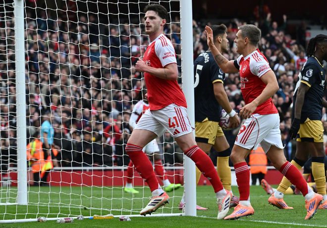 阿森纳2:0西汉姆同样是2球完胜,阿森纳则赢得更为简单;枪手全场制造了20次射门,作为对手的西汉姆只有可怜的4次。赖斯第38分钟在禁区内抽射破门弑杀旧主;第65分钟,廷贝尔拉球切入禁区被迪乌夫拉倒在地,阿森纳获得点球机会;萨卡主罚命中。阿森纳取胜后,已经反超利物浦夺得了