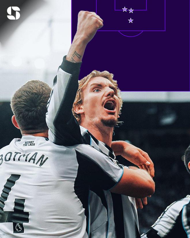 欧冠首胜!纽卡4-0圣吉罗斯 戈登点球双响 沃尔特马德连场建功