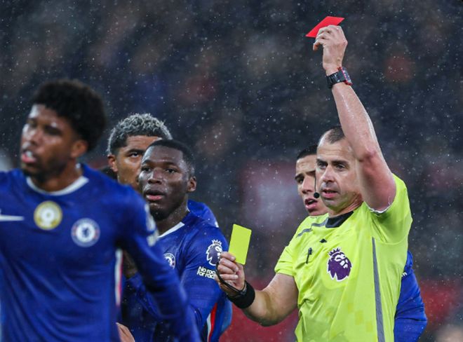 英超联赛各项赛事中红牌数量并列第一。蓝军共有15名球员被罚下场,与狼队持平。其中4人出现在6月初之后,包括尼古拉斯·杰克逊在世俱杯上的被罚下场。自2022-23赛季以来,蓝军仅在联赛中就已领到11张红牌,这仍是