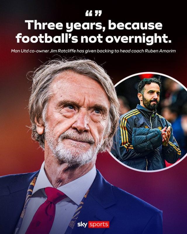 体坛周报全媒体报道曼联换帅?阿莫林辞职?这些担忧或者期待可以休已。曼联股东之一、目前竞技层面的实际掌门人拉特克利夫日前接受采访,明确表示将给足阿莫林3年时间,在曼联推行他的改造计划。不管对曼联球员、球迷、对手、媒体,更重要的是阿莫林本人,这都是一个强烈的信号。