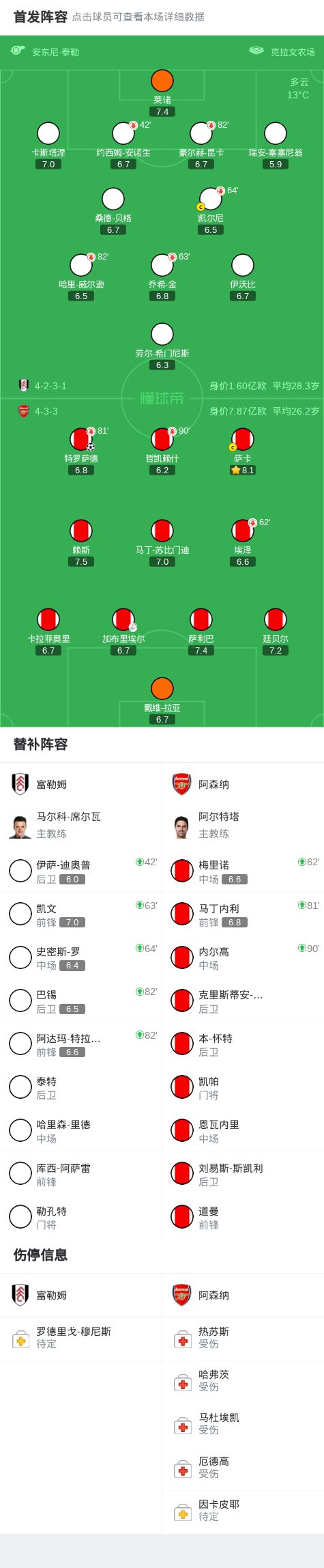 第42分钟,富勒姆换人,安诺生伤退,迪奥普登场