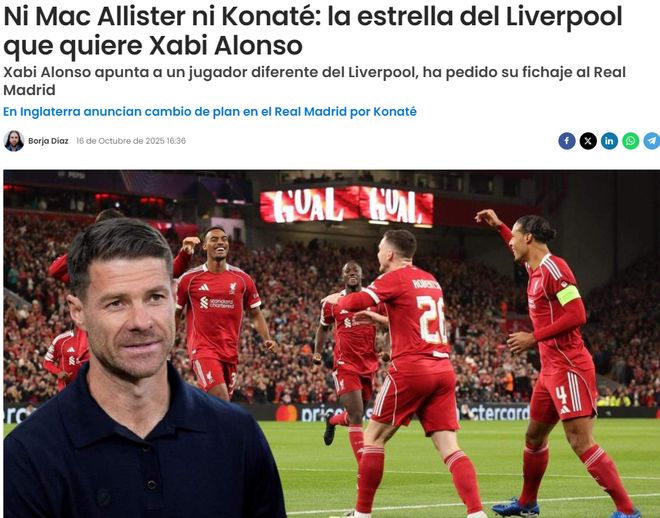在本周末联赛开始之前,西班牙的一份惊人报道称哈维·阿隆索已告诉皇马高层密切关注这位德国中场。据Defensa Central报道,阿隆索“要求皇马密切关注维尔茨在利物浦的未来”。阿隆索在勒沃库森执教时与维尔茨共事,并一直希望将他带到皇马,直到利物浦抢先一步。