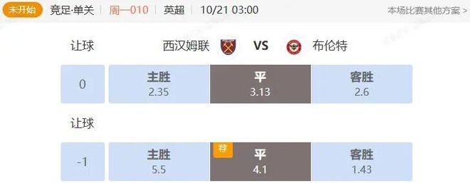 网易红彩今日挑选专家戴永强和陈亦明带来英超+西甲两场赛事解析,更多精彩方案可下载“网易红彩”App进行查阅!1.专家:戴永强竞足 周一010 英超 西汉姆联VS布伦特开赛时间:2025-10-21 03:00:00西汉姆联1胜1平5负积4分排名联赛第19,球队新赛季表现并不理想,开局惨遭连败,不过好在在新帅努诺上位后的整顿还是有一定作用的,第一场便1-1逼平了埃弗顿,可惜随后与阿森纳的交锋告负,且这2场均是客场作战,本场比赛这位葡萄牙人也将迎来执教铁锤帮后的首个主场,必定十分重视本场比赛,战意不容置疑。布伦特福德2胜1平4负积7分排名联赛第16,其中2个胜场均是在主场取得,目前3个客场比赛全都战败,特别是防守端累计丢掉8个球,就连此前与诺丁汉森林的交锋也丢掉3个球,要知道诺丁汉森林本赛季仅攻入5粒进球,可见其防守漏洞之大。加之球队进攻火力下滑,此前锋线双子星姆布莫和维萨均已离开球队,他们上赛季共为球队贡献38粒联赛进球,而球队目前锋线也基本依靠巴西前锋蒂亚戈,极易遭到针对性布防,锋线威胁性不足。数据方面初始给到五五开的局面,后市信心没有太大变化,双方联赛表现都不太理想,近期交锋也各有胜负,市场并没有给到任何一方支持。不过,西汉姆联已深陷降级区,球队首要目标是尽快摆脱降级区,主场机会必定不会放过,本场比赛更看好主队平或一球小胜。竞彩选择平+让球平,预测比分1:0或2:1。2.专家:陈亦明竞足 周一011 西甲 阿拉维斯VS巴伦西亚开赛时间:2025-10-21 00:30:00阿拉维斯在2025-26赛季西甲联赛的前八场比赛中取得了3胜2平3负的战绩,积11分,排名积分榜第10位。阿拉维斯上赛季在西甲联赛中排名第 15 位,他们已经连续三个赛季待在西甲没有降级。球队在 10 月国际比赛日之前以 3-1 战胜了 10 人的埃尔切,这是他们自 9 月中旬以来的首场胜利。阿拉维斯本赛季的三场胜利中有两场是在主场取得的。瓦伦西亚自 2021 年 8 月以来就没有战胜过阿拉维斯,后者在过去五次交锋中保持不败,在此过程中取得了四场胜利。而且瓦伦西亚是带着连败来的,在国际比赛日前他们连续输给了奥维耶多和赫罗纳。瓦伦西亚上一次联赛获胜,还是9 月 20 日主场战胜 10 人毕尔巴鄂竞技。虽然基本面对瓦伦西亚不太理想,但指数上对主队支持力度却不太足够,这场看好客队有望带走一分!竞彩选择让球玩法负,预测比分1:1或0:0。