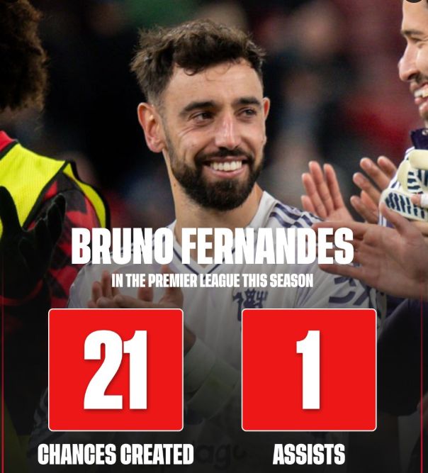 雷速体育10月21日讯 今天据英国媒体《足球内幕》统计,B费本赛季仍然保持高水平,但是曼联的锋线表现却一言难尽。统计数据表明,B费本赛季迄今为止创造了21次绝佳破门机会,是所有