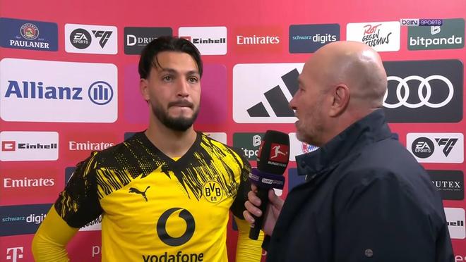 感谢你接受beIN Sports采访。今晚在慕尼黑的失利,你是什么感受?似乎踢好45分钟还远远不够?是的。对阵这样的对手,踢好半场球是不够的。我们都清楚,如果整场比赛中没有全力以赴去限制他们、去扰乱他们,那他们随时都能让你付出代价。幸好下半场我们有所反应,试着去踢出自己的东西,也创造了一些机会。但整体来说,这还不够。本赛季这支多特蒙德被称为更有个性、更有反弹力的球队。但今天上半场这种特质完全没有体现,这是为什么?说实话我也不太清楚。我们有计划,也尝试执行教练布置的战术。但问题是,对阵拜仁真的太难。你去压迫他们,不行;你去退防,也不行。我们夹在中间有点无所适从。只能说,下半场的表现还不错,我们会以此为基础继续提升。最后一个问题,今天你的位置安排有点不同,不是惯常的站位。这是因为国家队比赛之后要保护身体,还是另有原因?这只是教练的战术选择。我完全尊重他的决定。他赛前告诉我会从替补开始,我接受了,这没有任何问题。