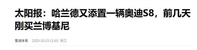 23. 据接近球员的消息人士透露,哈兰德对每辆爱车的技术参数都如数家珍,甚至亲自参与制定保养周期与驾驶调校方案。24. 这种近乎职业化的严谨态度,也许正是他在绿茵场与私人生活中皆能保持顶尖水准的关键所在。25. 随着赛季持续推进,相信这位来自北欧的超级射手将继续用一个个精彩进球,以及一次次令人瞠目的新车亮相,持续点燃全球粉丝的热情与期待。信源来源:雷速体育2025-10-23 太阳报:哈兰德又添置一辆奥迪S8,前几天刚买兰博基尼