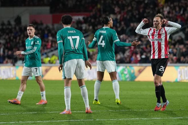 本轮面对积分榜下游的布伦特福德,利物浦再次开场闪电丢球,被对手的“手榴弹”界外球砸晕,随后半场结束前一次传球失误,被布伦特福德轻松打反击单刀扩大优势。