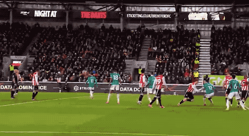 本轮开始前,利物浦5胜3负,已经落后榜首的阿森纳4分了。好在本轮的对手布伦特福德最近5次对阵利物浦全败。开场只有5分钟,布伦特福德的大力界外球就转化为了进球,卡约德将球投掷到了小禁区附近,阿约尔摆渡,瓦塔拉一记精彩的凌空侧钩,打破僵局。