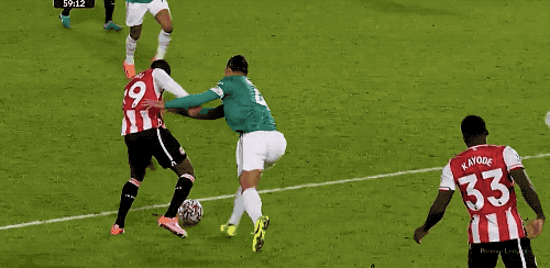 第30分钟,迪洛伦佐突入禁区倒地,裁判认定阿切尔比犯规,判罚点球。