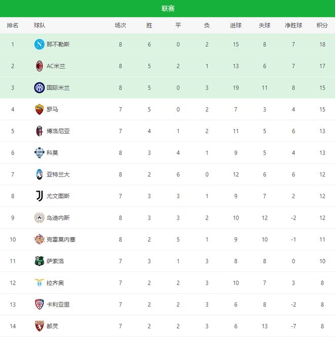 意甲第8轮战焦点大战,那不勒斯对阵国际米兰的榜首之争,谁全取3分谁登顶,结果在欧冠2-6大败的意甲卫冕冠军笑到最后,3-1力克国米,领跑积分榜;帕尔马0-0战平科莫;亚特兰大客场被克雷莫内塞1-1逼平,英超名将瓦尔迪破门建功。那不勒斯3-1国际米兰一场蓝色对决,成为意甲第8轮的转折点。那不勒斯在欧冠惨败埃因霍温之后陷入低迷,近7场输掉4场,攻防两端皆显疲态;而国米则气势如虹,各项赛事七连胜、18球仅丢2球,赛前外界普遍看好蓝黑军团全取3分顶登。