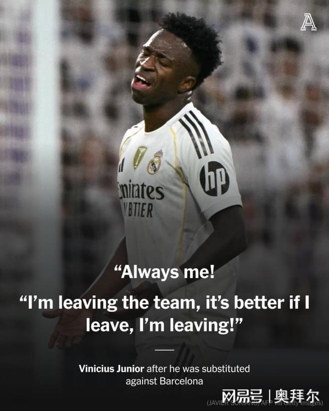 在伯纳乌对阵巴萨的第72分钟,维尼修斯被换下,这让维尼修斯非常不满,对着替补席大喊,“我?是我?教练,教练!是我吗?”“总是我!我要离开球队!我要离开,最好是我离开!”《阿斯报》透露,这并非是维尼修斯的一时气话,“维尼修斯认为一个根本问题在于,阿隆索并不喜欢他。因为只有这个原因,才可以解释这件事情。维尼修斯认为自己尽到了自己的责任,尽可能帮助防守,尽管这意味着他在进攻中的作用被降低。”