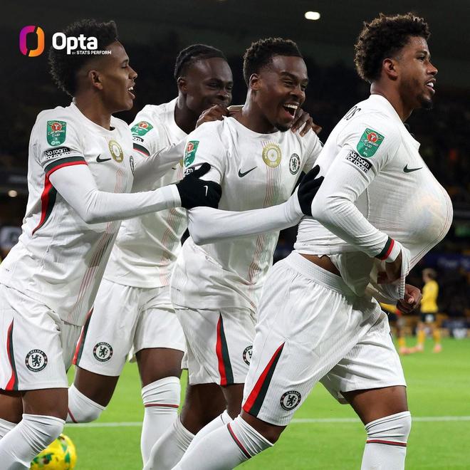 英联杯第四轮,切尔西客场4-3击败狼队,4粒进球均由21岁及以下球员打进,切尔西创造了