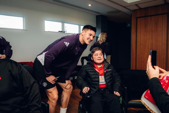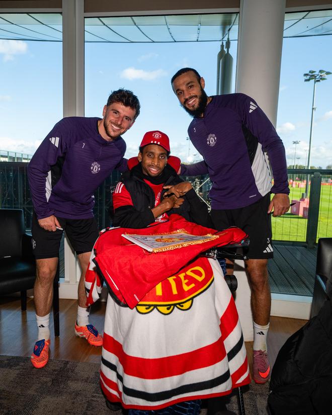 在曼联基金会最新举办的“梦想日”活动中,主帅鲁本-阿莫林带领全队为年轻球迷及其家人打造了意义非凡的一天,现场气氛热烈。队长布鲁诺-费尔南德斯、卡塞米罗、莱尼-约罗等球员参与其中,为球迷签名、合影,并回答了他们提出的一些问题。这项特别活动每赛季举办两次,受邀球迷将有机会与红魔球员见面,并在吉米-墨菲中心的阳台上观看球队训练。今夏新援库尼亚、布莱恩-姆伯莫、本杰明-谢什科和拉门斯也首次参与了俱乐部的这项活动,在训练基地与球迷共同度过了欢乐时光。姆伯莫在与球迷互动时受到热烈欢呼,他表示:“参与基金会的‘梦想日’活动是一次非常棒的经历。能够见到这些家庭,和他们合影、在球衣上签名,我很感激能有这样的机会让他们展露笑容。能见到每一位球迷真的太美好了,尤其是他们每个周末都在为我们加油助威。”谢什科很享受帮助年轻球迷创造终身难忘回忆的过程,他说:“这对我们来说意义非凡,因为我们能让球迷开心,还能回答他们的问题。我知道这对他们帮助很大,能给他们带来很棒的感受,而我也很乐意用各种方式回馈他们、提供帮助。”对许多球迷而言,在人生艰难的时刻,这样的活动带来了真正的鼓舞。他们从多佛、伦敦、爱尔兰共和国等地远道而来,其中一些人曾经历癌症诊断、重大疾病等难以想象的困境。队长布鲁诺·费尔南德斯表示:“作为曼联球员,参与这样的活动、回馈球迷非常重要。每次看到孩子们见到我们时的笑容,都让我感到很开心。我们能感受到他们在场上场下给予的爱与支持——和他们共度这些温馨时刻,正是这份职业的意义所在。”12岁的球迷杰登是当天的参与者之一,能见到心中的偶像让他激动不已:“今天太难忘了!当球员们走进来的时候,我完全被追星的喜悦冲昏了头,都不知道该作何反应!我喜欢所有球员,布鲁诺是我的最爱,他甚至还录制了一段视频,祝我的球队在接下来的比赛中好运。”杰登的父亲补充道:“能和杰登一起来这里,真的太特别了。在他经历了这么多之后,看到他能有这样的体验,我真的无法用言语形容。这对他来说意义重大,我能看出见到球员们给了他很大的鼓舞。球员们对他非常友好,热情又亲切。”TA记者Andy Mitten表示:“太暖心了!作为曼联基金会梦想日活动的一部分,身患绝症的曼联球迷受邀前往卡灵顿训练基地,与球员见面并观看球队训练。我收到了几位家长的留言,他们都特别开心。”【上咪咕独家看英超】