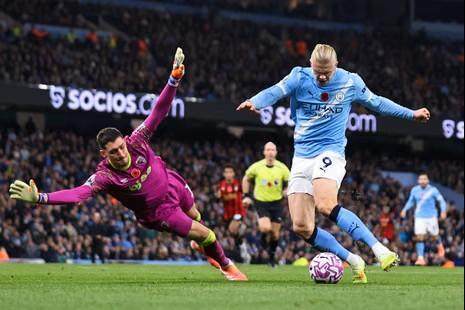 伯恩茅斯多次试图在哈兰德触球前,让一名中卫立刻上抢予以化解。接着问:如果曼城不是直接找哈兰德,而是迂回,通过第三甚至第四人把球打到空当,伯恩茅斯可以解药?即使有,也未必管用。谢尔基两次游弋到无人紧逼的区域,球一上脚,立刻打向客队中卫身后。哈兰德两次获得极对口味的长距离直线单刀。谢尔基传完,隔着30米开外,不等哈兰德完成最后一击,已经举手开始欢呼。还有一点,哈兰德如果拉出禁区前沿的空当,曼城会让谁来切入,谁来传空?插空的人,大致上是代庖左闸的奥莱利,而策划声东击西的人,是福登。表面看,曼城貌似放弃了极盛时期的惯用打法,但这个变化,收益还是很明显且丰富的。突出哈兰德,收缩之后快反,增加中场防守人手破对方紧逼。击败伯恩茅斯,曼城回到了熟悉的排位,积分榜第二。曼城攀至次席,虽然和阿森纳还有6分差距,但对榜首的心理威胁不可估量。阿森纳不是没遇到过这个局面,两年前都跑出了90%以上的领先局面,依然惜败。这一次,他们能扛住考验吗?