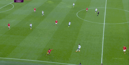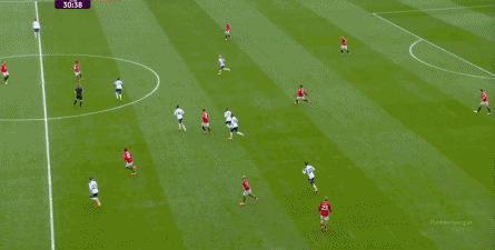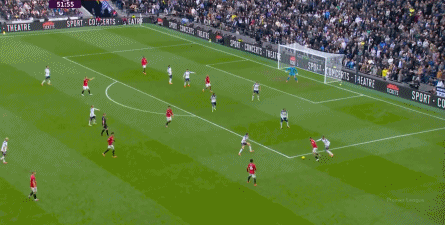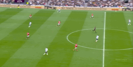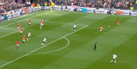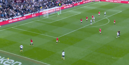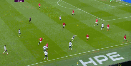 所以你可以看到,当热刺打得比0-0的时候更简单一些,其实就是将压力直接甩到曼联后卫的身上的时候,曼联就难免要出问题。哪怕当时的曼联在中后场已经换了3个人,看起来已经补充好了体能。但这就是我们不厌其烦,一直在说的观点:无论你在防守端如何调整和换人,曼联的防守问题几乎是无法解决的,因为你的球员的实力就是如此。只要对手压上来,持续地制造防守压力,曼联的防守端就会出乱子,这场比赛的曼联甚至因此折损了马奎尔。而这意味着什么?意味着未来几场比赛,约罗可能会重回首发了。老将和年轻球员各有问题,这一点完全可以得到理解,毕竟你用他们,就要在战术思考中考虑到他们现阶段的短板。但作为曼联后卫线最强一环,你也很难苛责德里赫特了,因为比赛临近结束的他已经几乎耗尽,不仅要看到他需要面对替补上来的特尔,还要看到他在换人之前作为边中卫的表现: