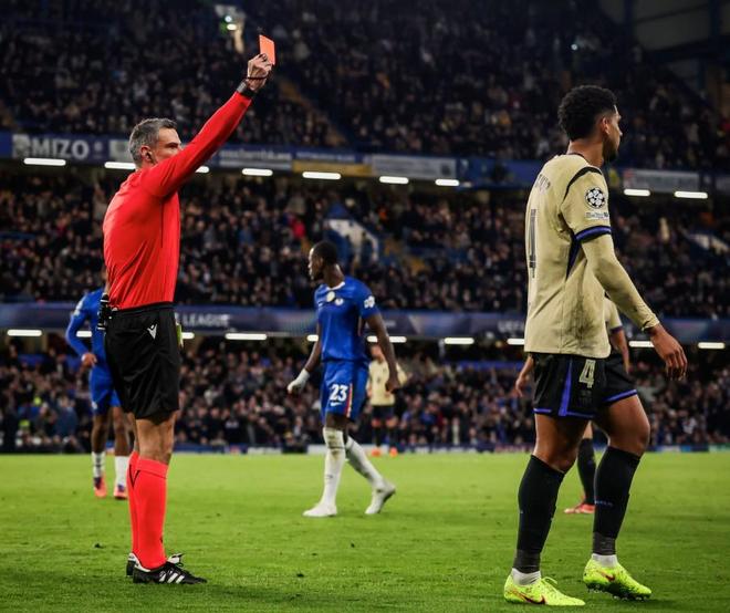 北京时间11月26日,在欧冠联赛阶段第5轮的比赛中,巴塞罗那上半时过后客场0-1落后于切尔西,更为不利的是他们的场上队长阿劳霍在第44分钟两黄变一红被罚下。
