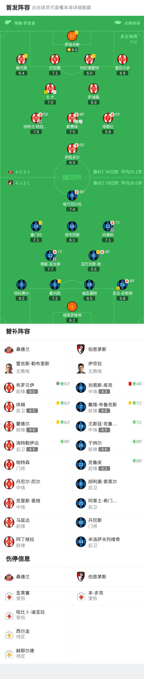 第69分钟,让二追三!布罗贝伊头球破门反超比分,桑德兰3-2伯恩茅斯