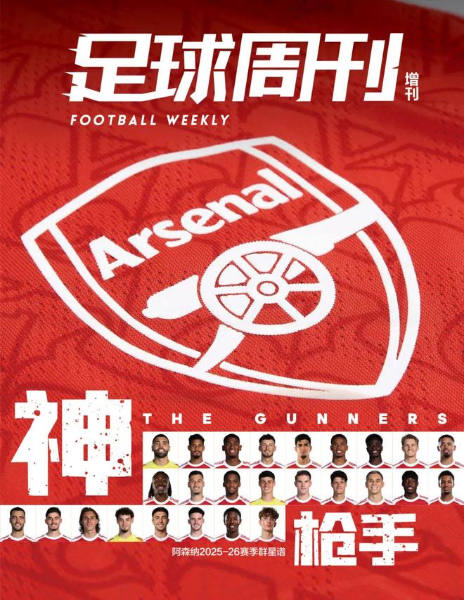注:预售封面仅供参考,上市时间预计2026年1月下旬。阿森纳2025-26赛季群星谱《神枪手》火热预售中全书计划240页,全彩高清印刷定价108元预售价格100元(包邮)随刊附赠超大阿森纳一线队全家福海报