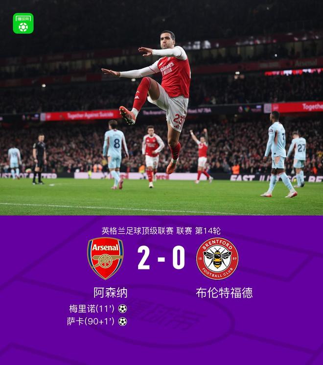 北京时间12月4日,英格兰足球超级联赛第14轮,阿森纳坐镇主场迎战布伦特福德。比赛中,本-怀特送出精准助攻,梅里诺接球后冷静施射破门,为阿森纳先拔头筹。下半场补时阶段,梅里诺展现个人能力,突破后传中找到萨卡,后者把握机会推射得手,将比分扩大。凭借这两粒进球,阿森纳以2比0战胜对手,全取三分。关键事件
