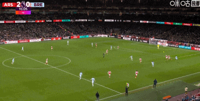 上半场第11分钟,本·怀特右路下底传中,梅里诺中路跟进头球打破僵局。梅里诺也以5粒头球成为本赛季的英超头球王。