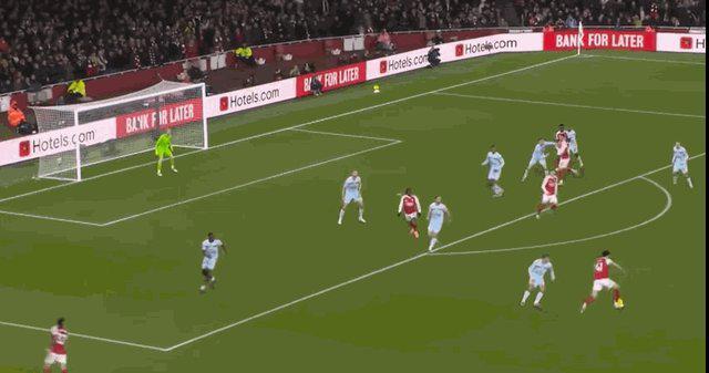 伤停补时阶段,梅里诺送出直塞,萨卡闪开角度左脚射门,凯莱赫虽然扑到皮球但无力阻止皮球飞入球门。阿森纳锁定胜局。