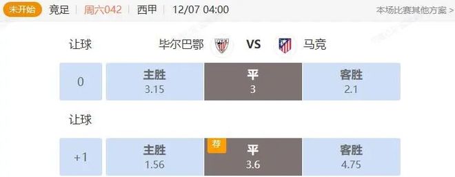 2.专家:戴永强竞足 周六042 西甲 毕尔巴鄂VS马竞开赛时间:2025-12-07 04:00:00