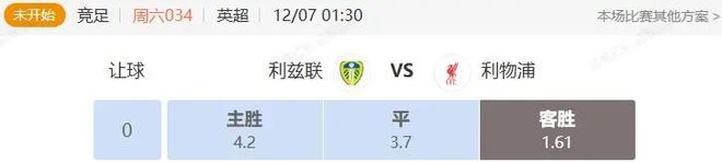 很多球迷现在都不太看好利物浦,因为利物浦各种负面消息太多了,尤其是关于主帅斯洛特的执教能力问题,确实,利物浦本赛季的战绩不佳,作为上赛季的卫冕冠军,而且转会期还有大力引援,与当前的排名不太相符,但是利物浦的成绩差,是比较而言,比较于其他豪门,比如曼城阿森纳,利物浦是差了不少,可是相较于本轮的对手利兹联队,那仍然是更强。本轮在数据面,给到利物浦的让步,后期有退滑,无非就两个原因,一个是利物浦目前不太好的形象定位,再一个就是利兹联上轮进了三个拿下了豪门切尔西,有强势题材,实际上利兹联能拿下切尔西,也是得益于切尔西中场核心凯塞多停赛,切尔西有没有凯塞多,差别很大。利物浦近两轮已经有所改变,比如让萨拉赫打替补,上轮没能取胜,因为桑德兰也不弱,但利兹联队可不具备桑德兰的防守能力。数据面看弱利物浦,倒是可以削减豪门热度,总体来说,本轮英超,还是看好利物浦能够胜出。竞彩选择负,预测比分1:2或1:3。