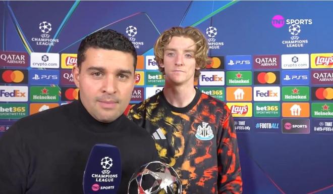 你是本场最佳球员,安东尼-戈登,恭喜你拿到这个奖项。经历这样一场艰难的比赛,你现在感觉如何?我感觉不错,但确实很累。我有点失望,因为我们真的付出了很多努力。我觉得我们开局踢得不太好,但我们很快做出了反应,进了两个球。比赛尾声被扳平,真的让人很难接受。当你捧起这个奖项、参加欧冠比赛、听到欧冠主题曲的时候,你能分享一下当时的情绪吗?你感觉怎样?那是世界上最棒的感觉。欧冠是最顶级的赛事,每名球员都渴望参与其中。我也想取得成功,希望能在这项赛事里走得更远。这就是我的目标。但当然,我始终想赢下比赛,所以当我们最终没能获胜时,心情多少会受到影响。【上咪咕独家看英超】