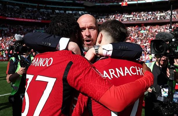 拉什福德曾是滕哈格的爱将之一,但在赛季末段,两人的关系逐渐恶化。这位英格兰球星因在输掉曼彻斯特德比后的第二天晚上外出夜店庆生而遭到公开批评,随后又因为在贝尔法斯特进行了一场长达12小时的龙舌兰酒狂欢后缺席训练,再次引发风波。2024年9月,在被解雇前一个月,滕哈格表示拉什福德必须“把自己的生活方式调整好”,随后在对阵水晶宫的0-0比赛中将他放在替补席上。这一问题也被他留给了阿莫林。一些球员幼稚、不成熟的印象不断加深。霍伊伦在欧冠对阵哥本哈根的一场比赛中与达洛特发生争执后,抱怨有些队友不愿意给他传球。尽管内部摩擦不断,在以当时英超时代最差的第八名收官后,围绕滕哈格未来的不确定性持续增加,但他和球员们仍在足总杯决赛中联手爆冷击败曼城。据称,在那场2-1的胜利中,球队氛围极佳,球员们暂时搁置了所有问题,即便对主帅并无太多忠诚的瓦拉内,也带伤及时复出。滕哈格及其助手米切尔-范德加赫和史蒂夫-麦克拉伦同样发挥了作用。当球员们入住梅菲尔的万豪酒店时,每个人的房间里都放着一封来自伴侣或挚爱之人的信,家人和朋友的祝福视频也通过聊天软件发送给了他们。比赛前一晚,球员们观看了一段他们彼此并肩作战的剪辑视频,背景音乐是阿尔-帕西诺在《挑战星期天》中的演讲。到了足总杯决赛当天早上,又播放了一段视频,一名曼联安保人员讲述了她和团队如何在阿富汗并肩作战、在逆境中战胜敌人的经历。