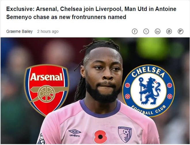 与此同时,曼联“认为自己处于领先杆位”,球员也“非常喜欢红魔的关注”。曼联已向塞梅尼奥勾勒出规划蓝图,讨论过他在鲁本·阿莫林手下的定位。TEAMtalk记者弗雷泽·弗莱彻此前曾报道称,塞梅尼奥已告知热刺自己希望“北上”。外界以为只剩曼联与曼城两强相争,但伊萨克受伤之后,利物浦也在加速引援。如今阿森纳和切尔西的加入,令这场五方争夺战愈发精彩。