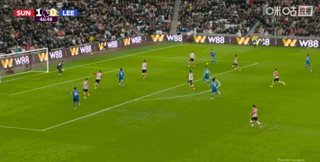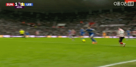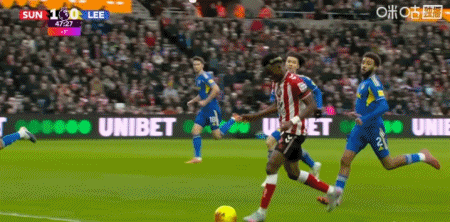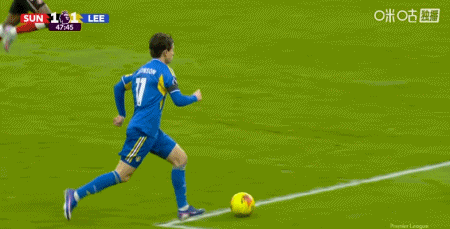 上咪咕独家看英超第47分钟,阿伦森助攻,勒温推射破门扳平比分,利兹联1-1桑德兰