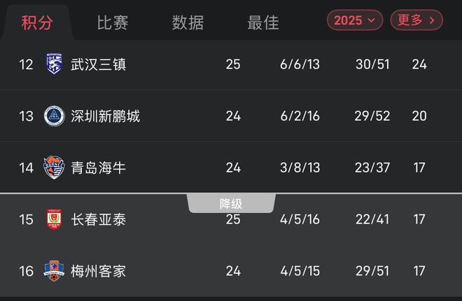 保级形势依旧胶着!中超末尾三队梅州、亚泰、海牛同积17分