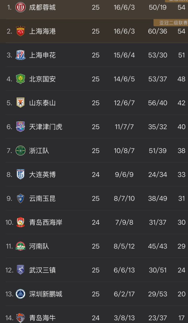 如此一来,中超争冠形势再次发生巨变。凭借本轮击败国安的胜利,海港积54分,追平了领头羊成都蓉城。只是因为7个净胜球劣势,暂时屈居积分榜次席。