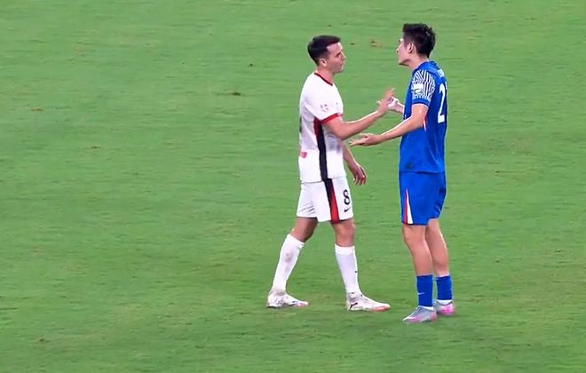 接下来的20分钟,两队互有攻守,在防守时也是阵型后退,没有给对手留下太多的空间,场面足够激烈,但精彩的场面几乎没有。第41分钟,徐皓阳禁区内挑球转身,皮球疑似打在李扬的上臂,申花球员投诉手球,VAR介入,比赛继续进行。
