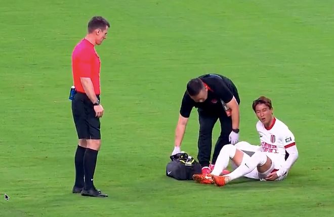 2分钟后,韦世豪完成射门后痛苦倒地,捂着大腿后侧表情痛苦,主动申请换人。韦世豪甚至没有办法自己走到场边,担架进场,韦世豪伤退。