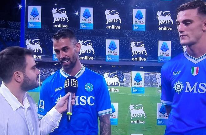 北京时间9月23日,在意甲第4轮的比赛中,那不勒斯依靠斯皮纳佐拉第73分钟打进的反超比分的关键进球,最终在主场3-2击败升班马比萨,赛后当选全场最佳球员的斯皮纳佐拉接受了DAZN的采访。