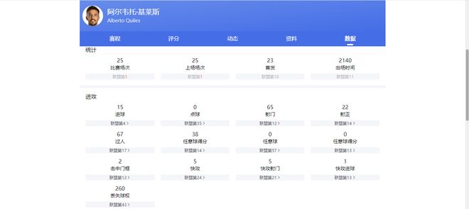 基莱斯算是性价比拉满的外援,实实在在能进不少球,战术执行力好,脾气好,不惹事,职业态度也好。本赛季25次出场过后,他已打进15球,送出2助攻。这些年津门虎主帅于根伟特别喜欢这类欧洲二三流白人球员。整个中超像津门虎这样齐刷刷上5个白人外援的,也非常罕见。
