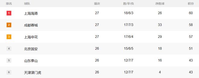 最终,经过今晚的三队鏖战过后,3支争冠球队均有惊无险地斩获胜利,上海海港积60分继续领跑,成都蓉城58分继续排名次席,上海申花则依旧以3分之差位列第三。本轮第一个比赛日过后,中超争冠依旧悬念重重。