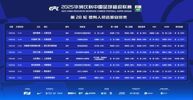 中超第28轮裁判安排公布中国足球 10-24 15:46中超官方公布第28轮裁判选派安排。乌兹别克斯坦裁判员伊尔吉兹·坦塔舍夫将执法山东泰山VS上海海港。马宁执法北京国安VS青岛海牛。
