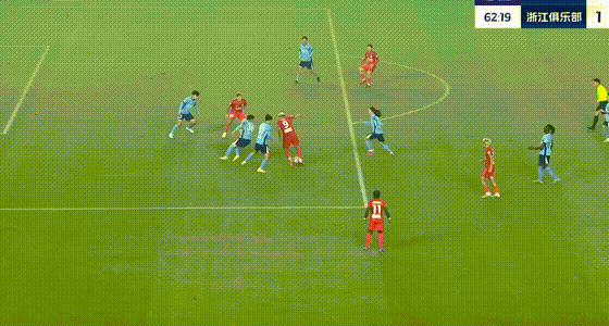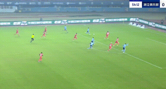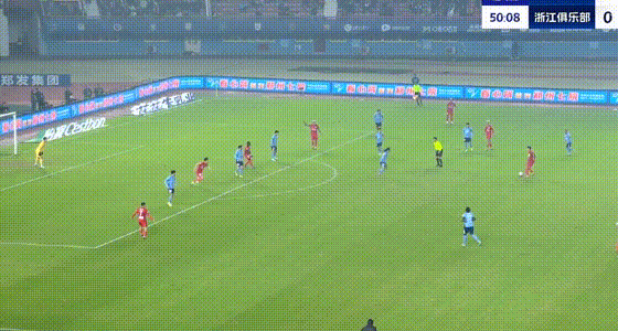 第55分钟,王钰栋突入禁区传中,卡列洛凌空将球踢进大门,浙江队扳平比分。