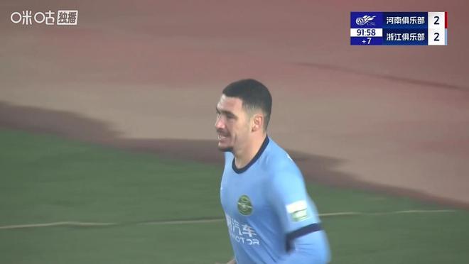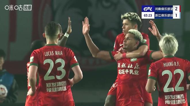 河南队本轮则坐镇主场迎战浙江队,本场比赛虽然与争冠、保级都无关,但也仍旧非常精彩。上半场第18分钟,河南队反击直接杀到禁区,卡多索的射门被门将扑出,然而皮球却恰巧打在了高速回放的李提香身上后反弹入网,河南队1-0打破僵局,随后双方展开高节奏的攻防大战但未能再改写比分,上半场河南队1-0领先。