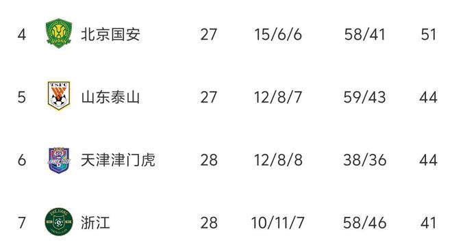 与此同时,第5的争夺同样激烈,天津津门虎在先赛一场的情况下追平山东泰山,两队同积44分分列第5和第6;浙江队则积41分排在第7。从积分上来看津门虎和浙江队都有冲击第5的机会,但倒数第2轮泰山队和津门虎直接对决,大概率将最终决定第5的归属。河南队本轮两度领先两度被扳平,积33分遗憾未能挤进前10,目前仍然排在第11,但在已经提前保级的情况下,这些显得已经没有那么重要了。